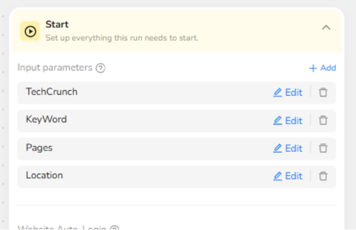 - Configuration: Set target keywords ("funding," "raises," "Series A"), location filters, and page depth (3-5 pages).