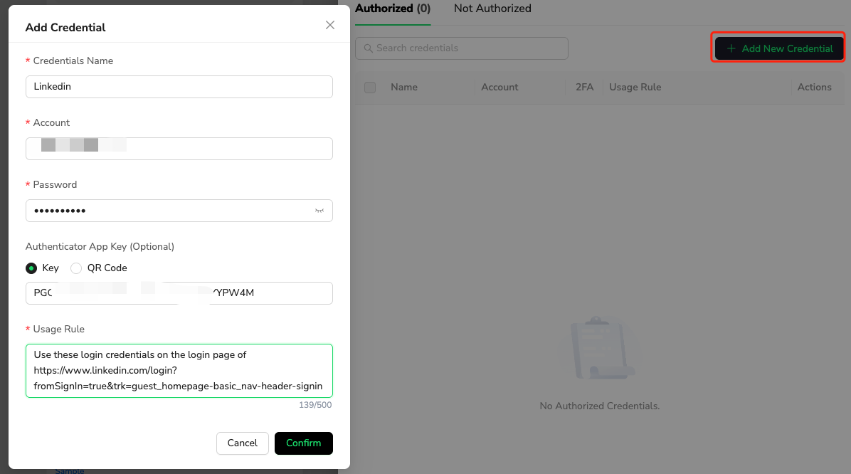 - Authenticator App Key: Paste the key you copied from LinkedIn