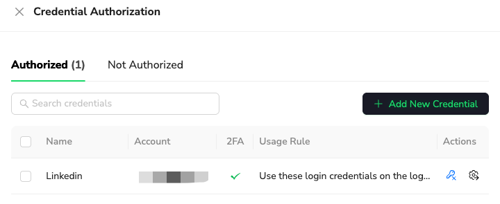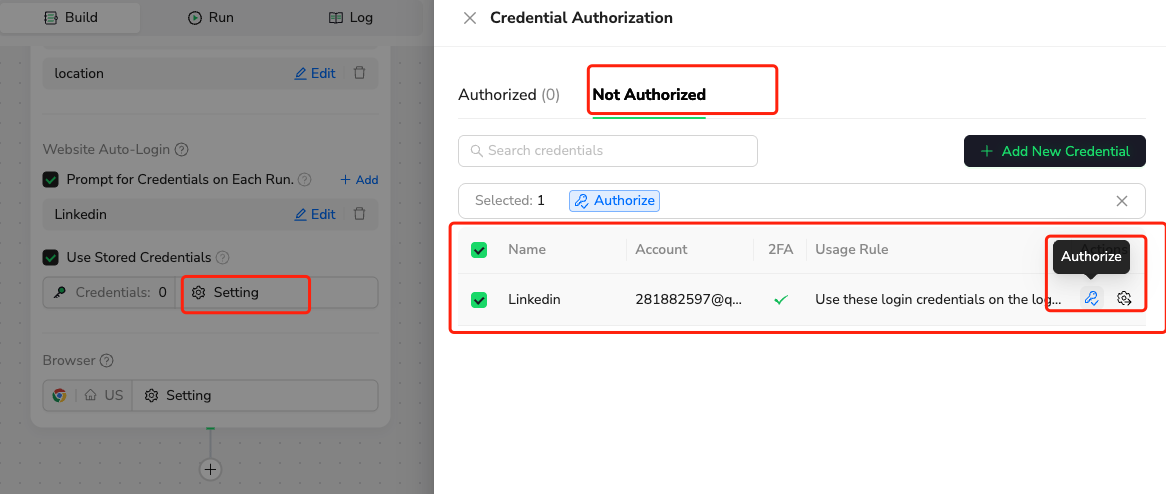 - In the Credential Authorization window, switch to the Not Authorized tab