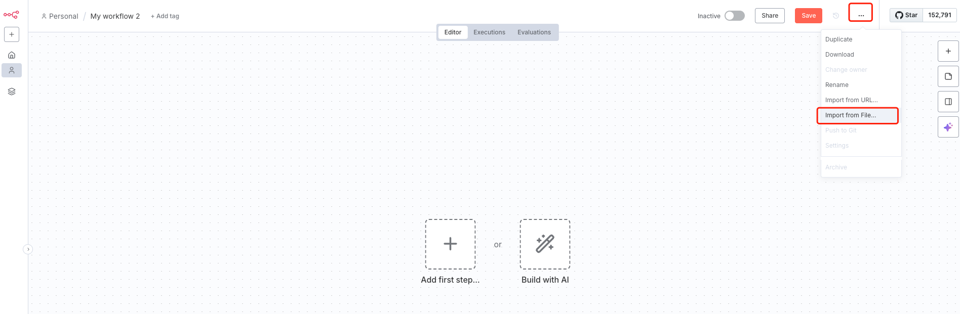 Follow these simple steps to import a workflow from a JSON file: