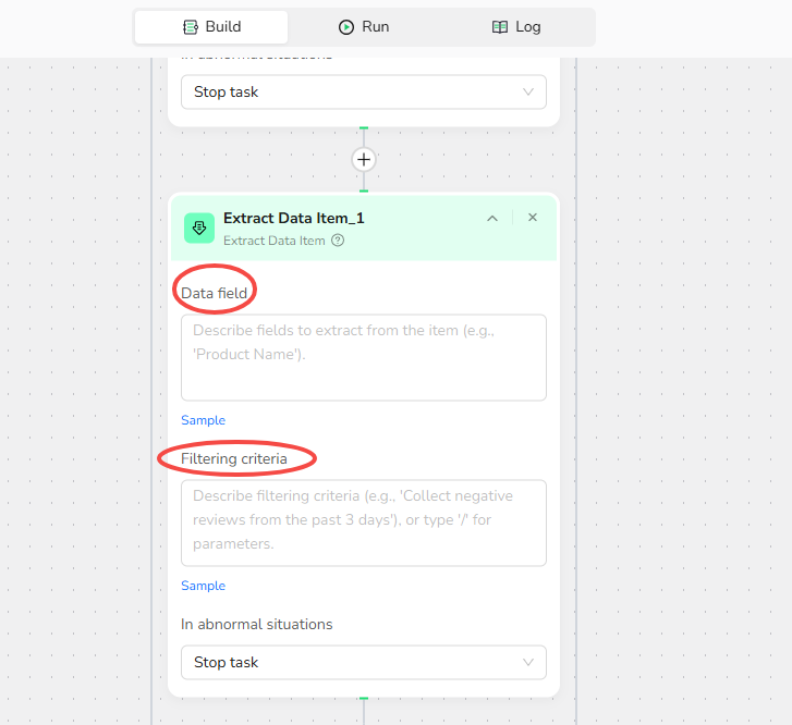 The Extract Data Item node is exclusive to the Loop List node, designed to extract structured data from the currently focused Item (e.g., title and price from a product card). It supports field-based extraction, with each Item processed independently. Data is aggregated across iterations. This sub-node simplifies data collection in workflows, enabling efficient list scraping without custom coding.