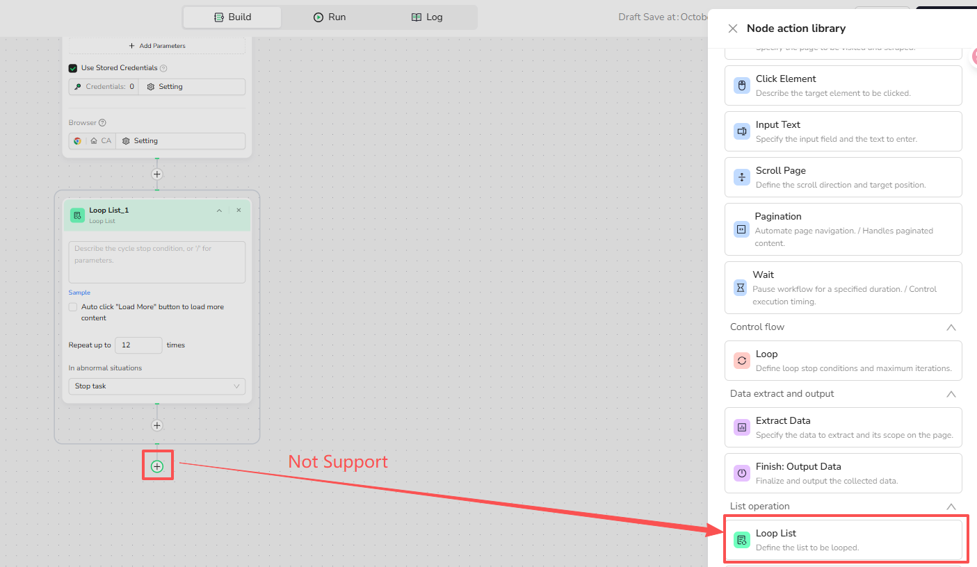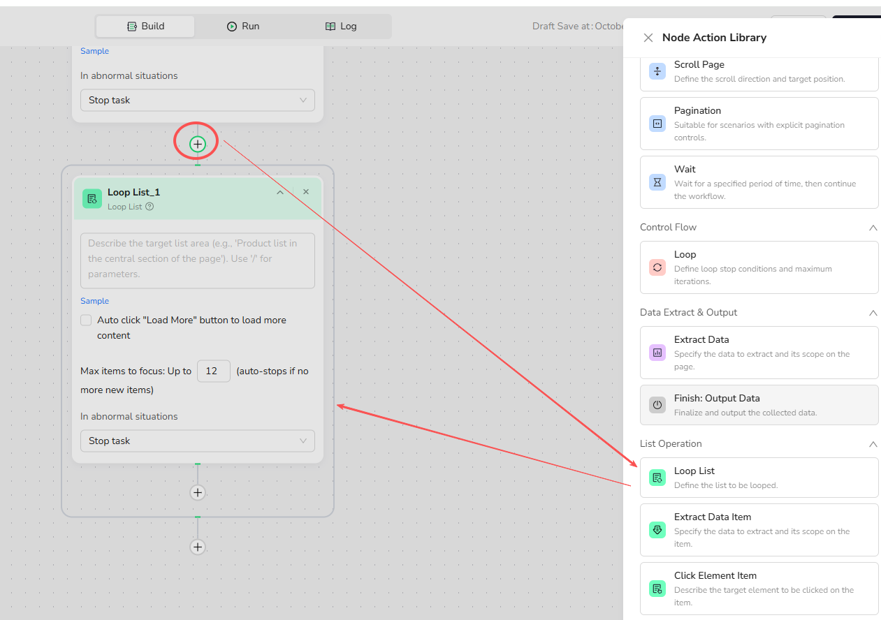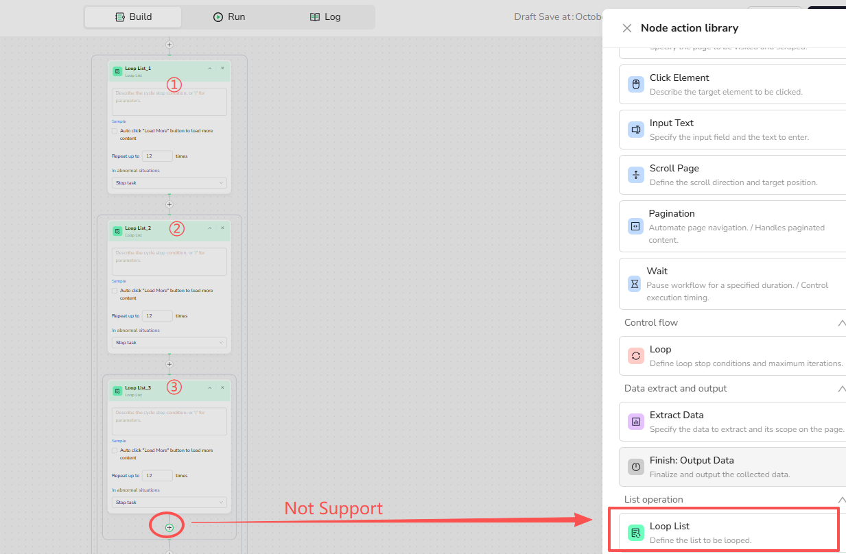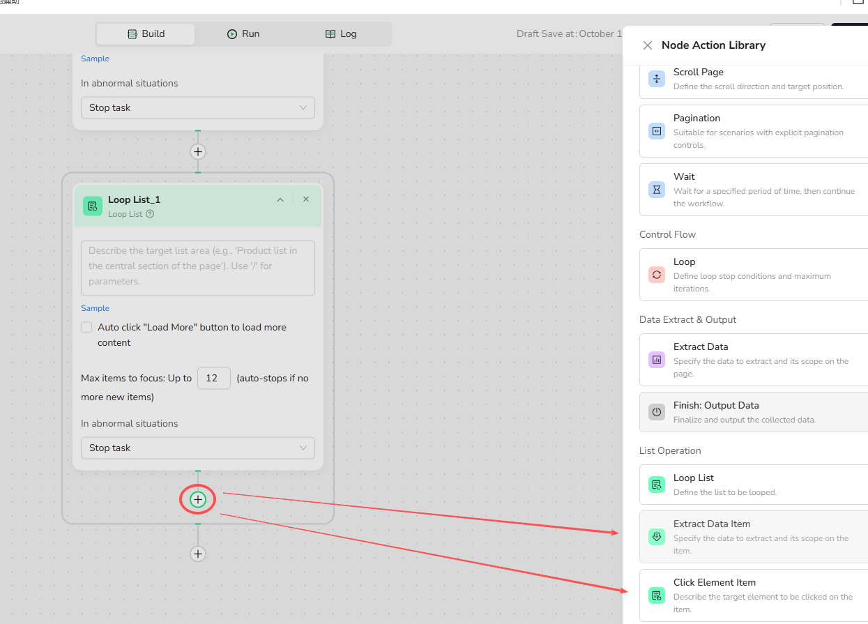 - Exclusive sub-nodes (Extract Data Item and Click Element Item) are only applicable to Loop List and cannot be used in other locations.