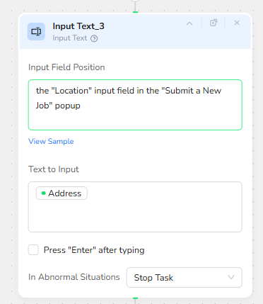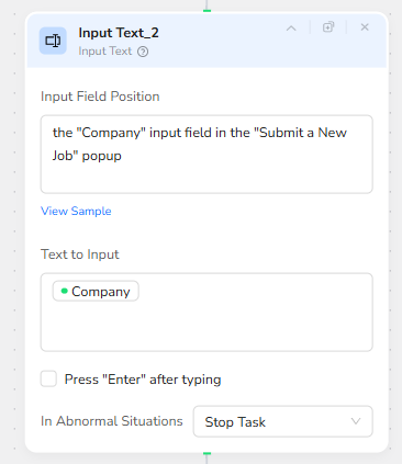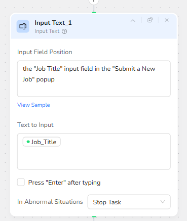 BrowserAct locates the Job Title input field inside the “Submit a New Job” popup and inserts the provided Job_Title parameter.