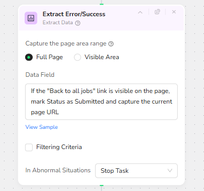 After submission, BrowserAct checks whether the “Back to all jobs” link is visible on the page to confirm that the job was successfully posted.