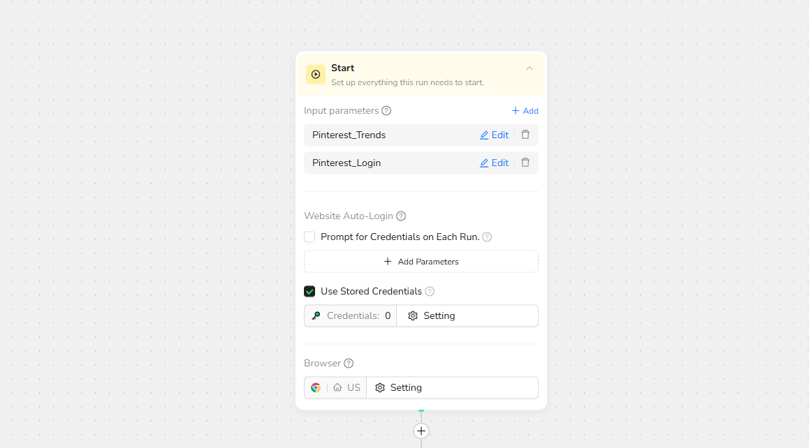 - Pinterest_Trends/Pinterest_Login: Enter your Pinterest Trends link (e.g., https://trends.pinterest.com/)