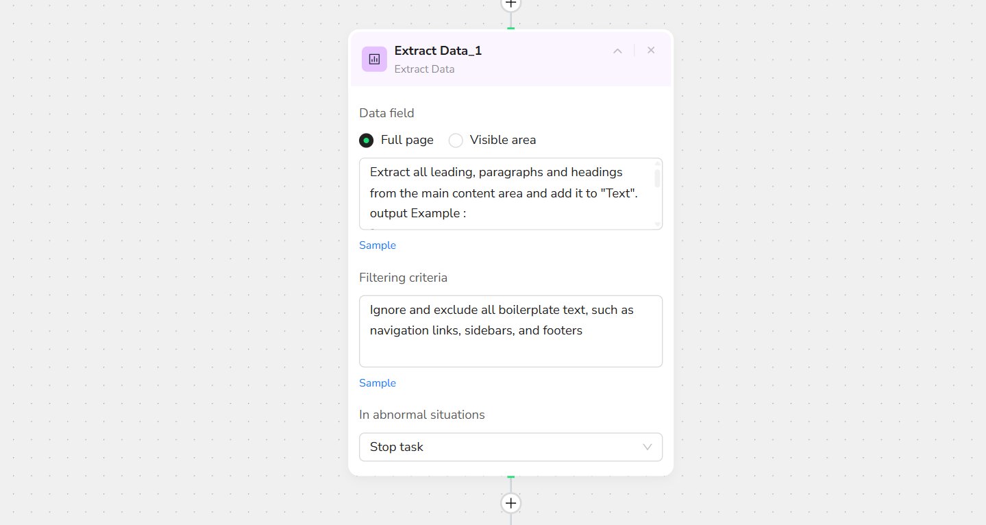 Note: You can specify the exact location of the data to be collected on the page to increase the accuracy of data extraction.