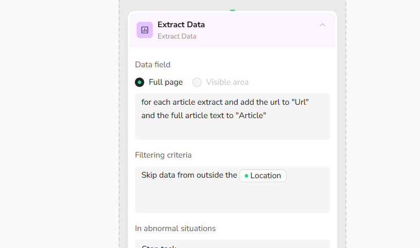 Note: You can specify the exact location of the data to be collected on the page to increase the accuracy of data extraction.