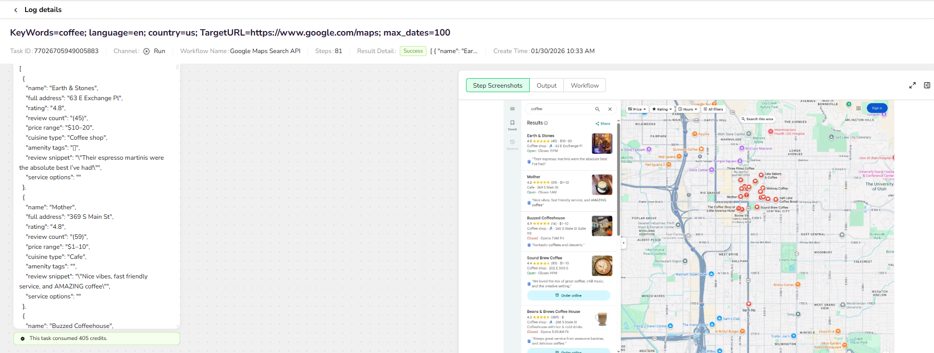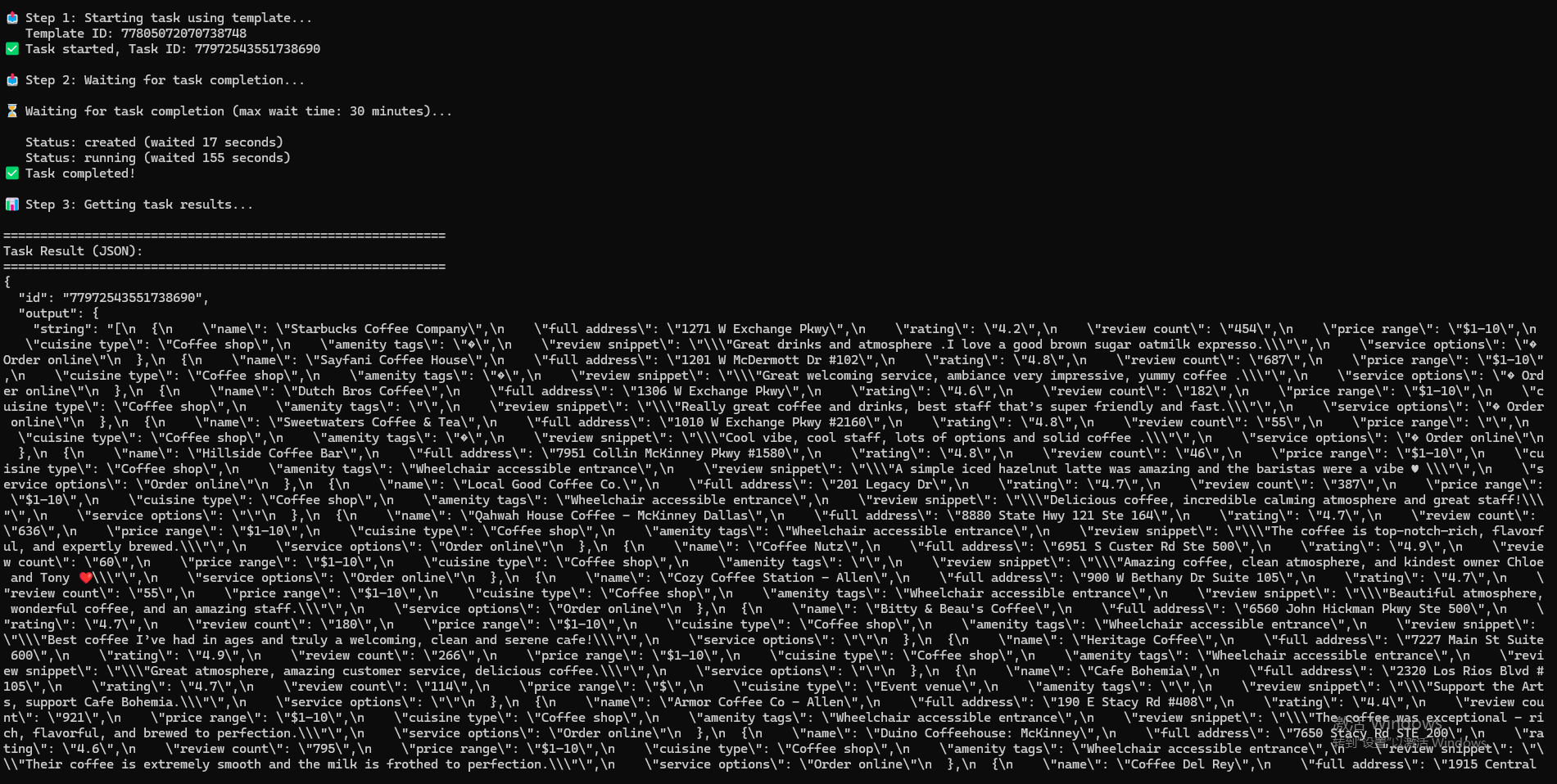Once created, you can use the BrowserAct API to invoke your workflow programmatically and retrieve Google Maps search results directly in your application.