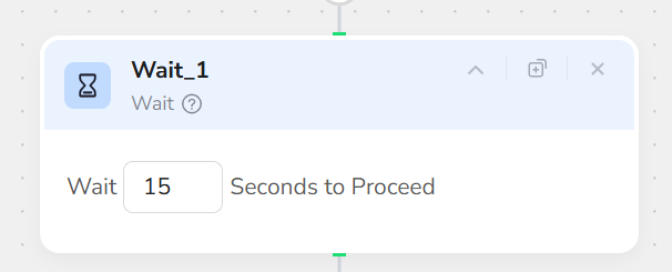 Add a "Wait" node and set it to wait 15 seconds to proceed. This allows time for the search results to load fully.