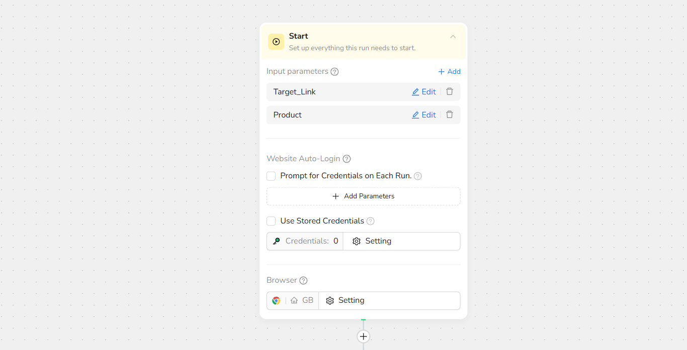 - Configure Parameters: Fill in necessary inputs like Target_url (e.g., "https://www.aliexpress.com/category/example") – or use defaults to learn how to scrape AliExpress quickly