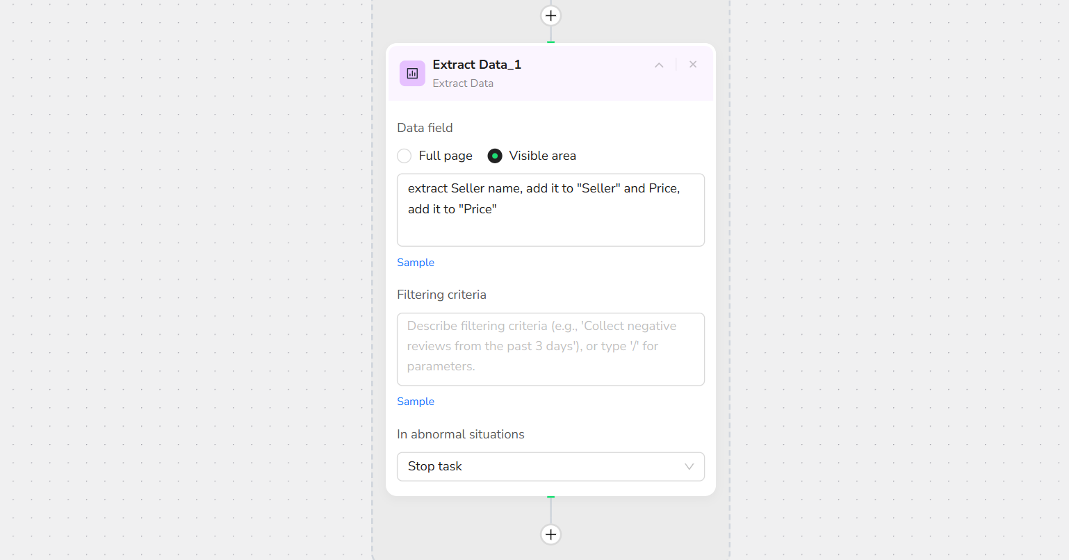 Note: You can specify the exact location of the data to be collected on the page to increase the accuracy of data extraction.