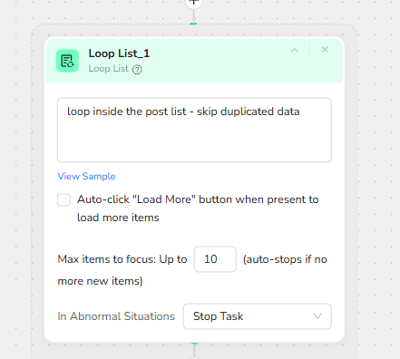 Once you are on the actual feed page, Loop List identifies the repeating “post container” elements and iterates through them. This is where you define “what counts as one post.”