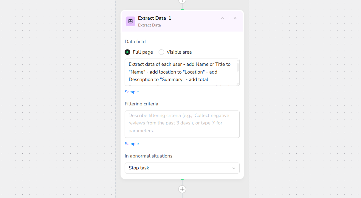 Note: You can specify the exact location of the data to be collected on the page to increase the accuracy of data extraction.