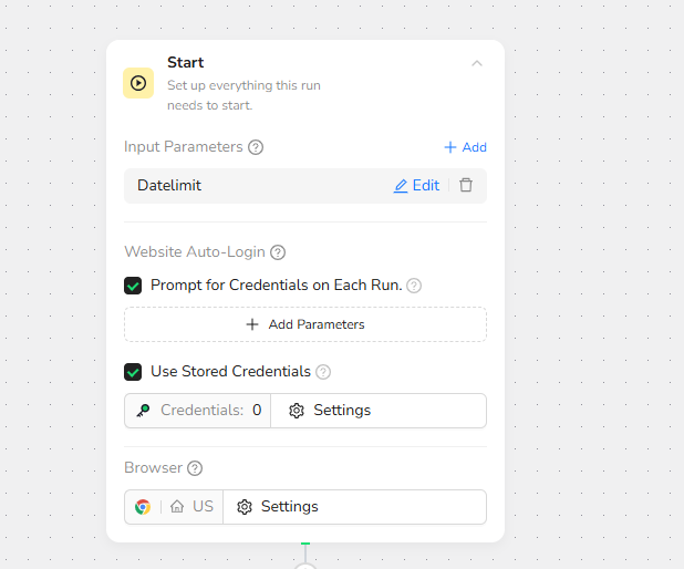 Step 2: Start Node - Input Parameter Settings