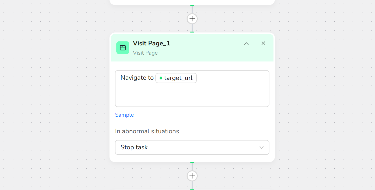 - Click the "+" icon to add actions. Start with "Visit Page" and enter "Visit /url" to direct the workflow to the specified URL, such as https://www.upwork.com/freelance-jobs/javascript/. BrowserAct's AI will automatically understand the page structure, powering your Forbes web scraper without hassle.