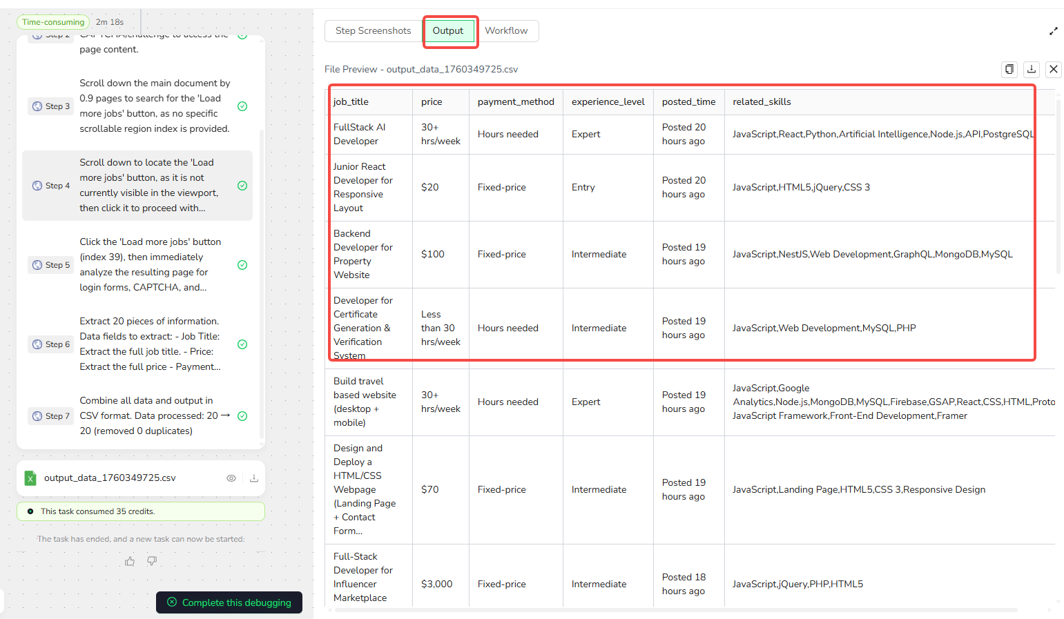 BrowserAct is a powerful automated data extraction tool that lets you easily scrape required data from any web page without programming knowledge. It can efficiently capture key freelance job data from Upwork’s massive repository of JavaScript-related job content, including job listings, salary details, client information, and project requirement specifics. What can it do for you?