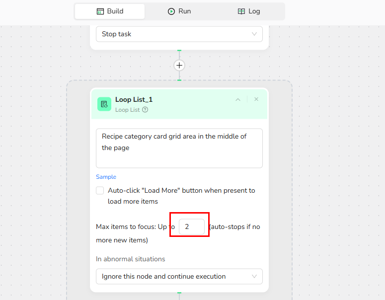 - Loop Stop Condition: The current page has no data to collect and cannot be turned, so the loop is terminated immediately and the task is continued.