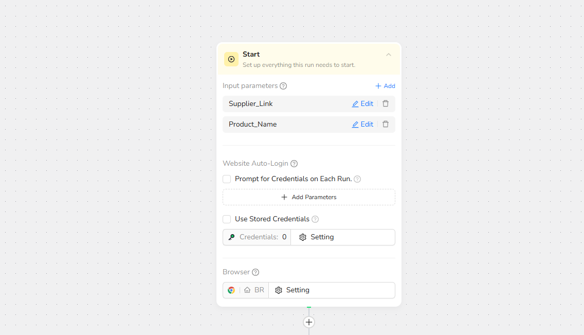 - Configure Parameters: Fill in necessary inputs like Target_url (e.g., "https://www.digikey.co.uk/en/products") – or use defaults to learn how to scrape DigiKey quickly