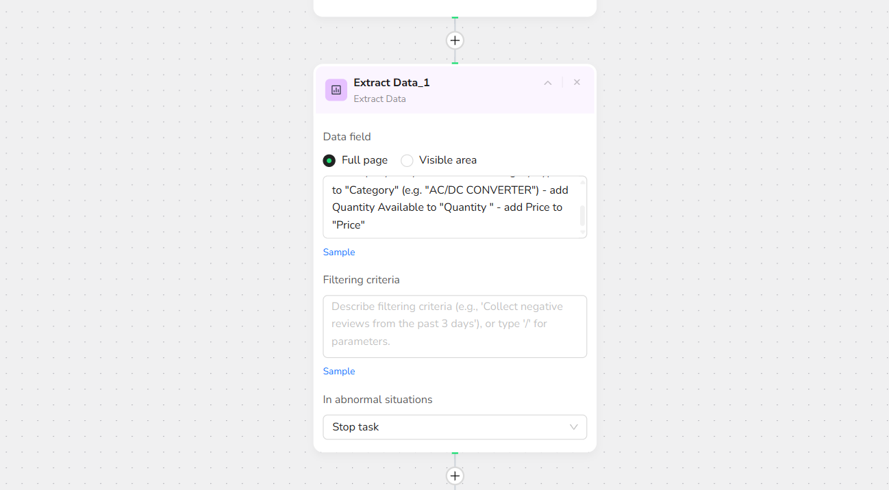 Note: You can specify the exact location of the data to be collected on the page to increase the accuracy of data extraction.